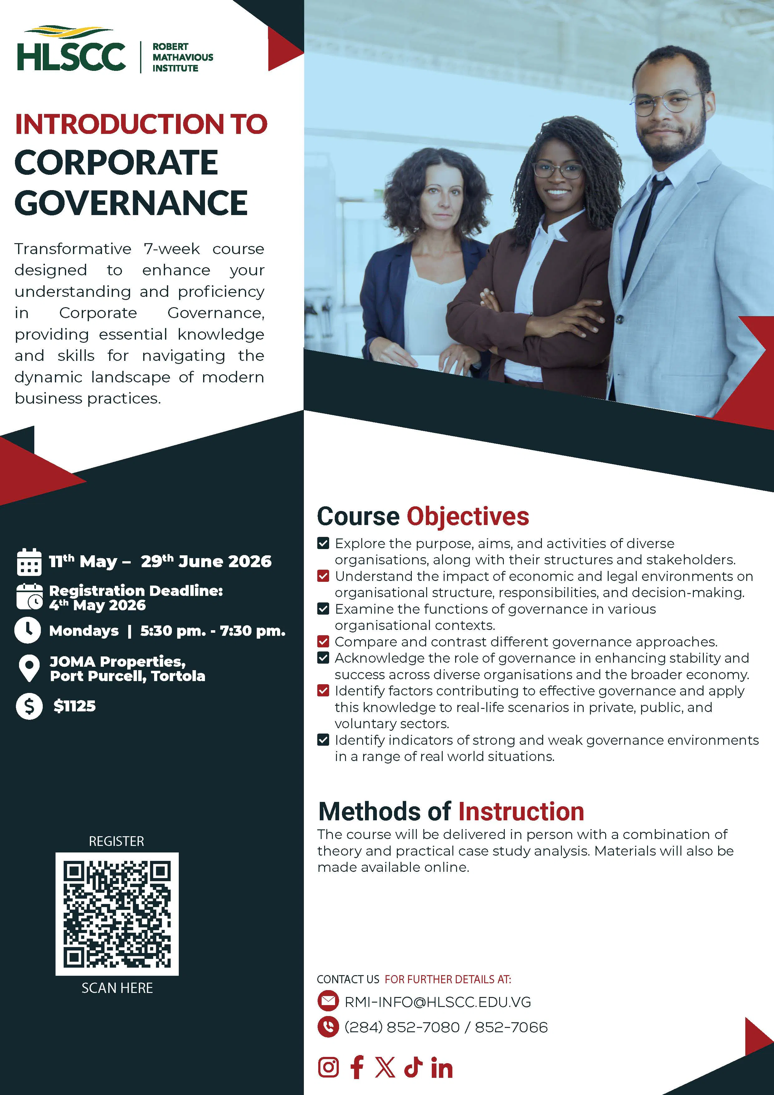 The Robert Mathavious Institute (RMI) is the premier centre for education and training in the financial services sector. As the only institution of its kind in the British Virgin Islands, RMI offers internationally recognised professional qualifications through programmes specifically designed to meet the needs of the financial services industry.
